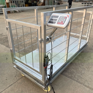 移动式犊牛称重装置,属于畜牧称重技术领域,包括压力传感器、围栏、开合连杆及万向轮,所述压力传感器贴近地面放置,所述围栏位于压力传感器上方,所述围栏包括固定栏及开合栏,所述固定栏与所述压力传感器连接,所...