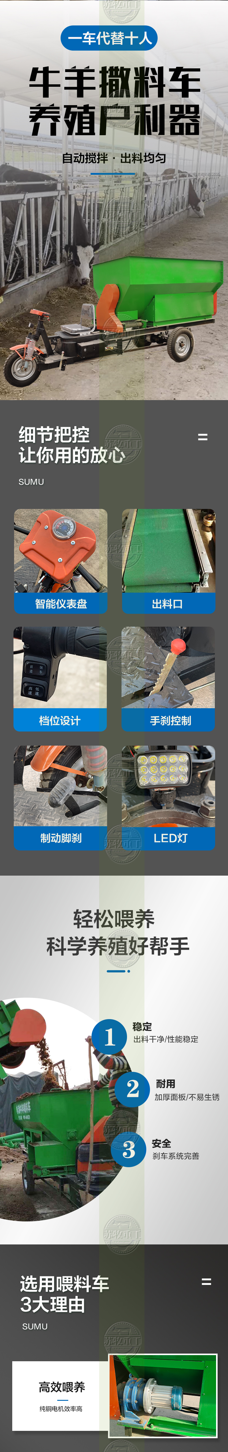 养殖设备电动撒料车是加装大容量的垂直式箱体,没有任何存料和死角,箱体的规划也是选用的框架式的,会坚固,电动撒料车,就算一个人也能够的作业,不需要太多的人力,并且在撒料过程中是能够控制速度的,行进的时分也能够随意调整方向,操作起来十分的简单。