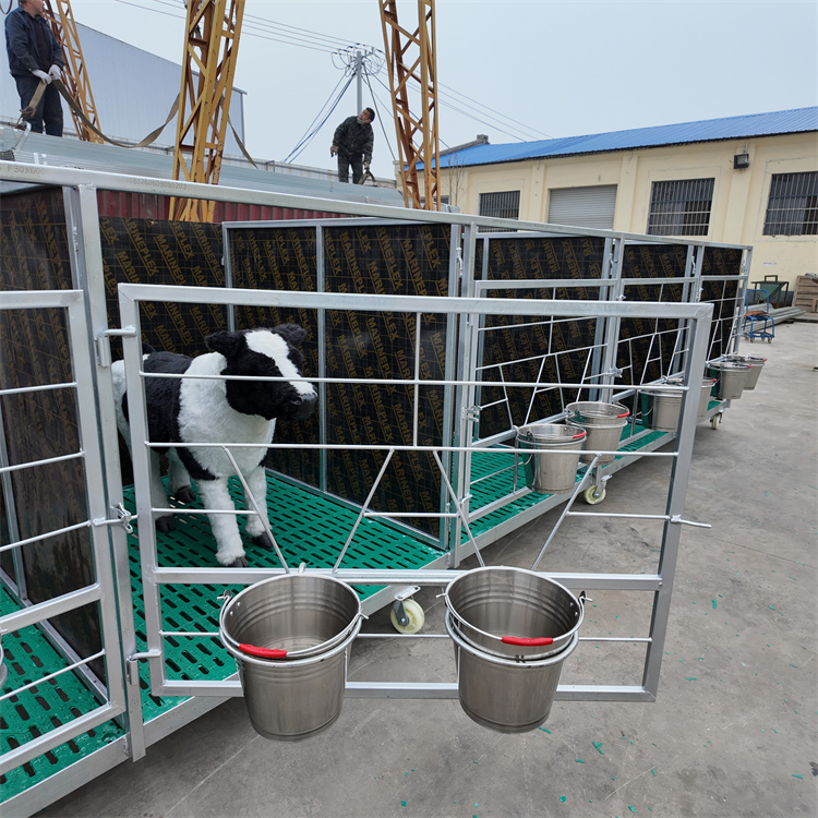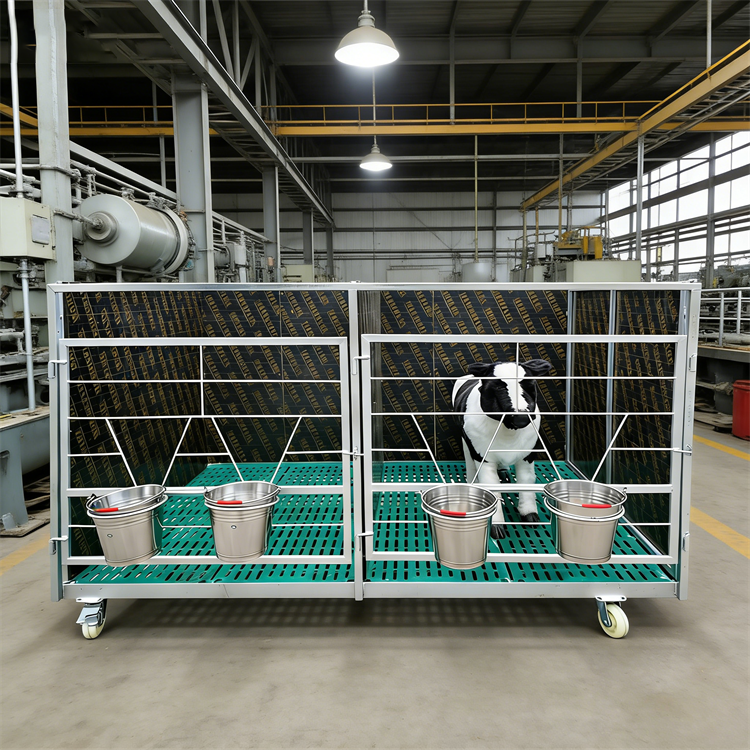 核心优势一:立单栏设计,从源头阻断交叉感染初生犊牛抵抗力弱,群居环境下易因互舔、接触粪便引发腹泻、呼吸道疾病等交叉感染问题。苏牧重工犊牛笼采用一牛一单栏科学布局,1.2米的标准间距搭配密度隔板,既能避免小牛互相啃咬、舔舐,切断疾病传播途径,又能为每头犊牛保留立活动空间,让它们吃饭、睡觉更安稳。每个单栏还标配食品不锈钢奶桶与自动饮水桶,喂食、饮水一体化设计,减少人工操作步骤,让犊牛喂养更省心、更规范。