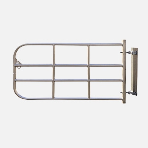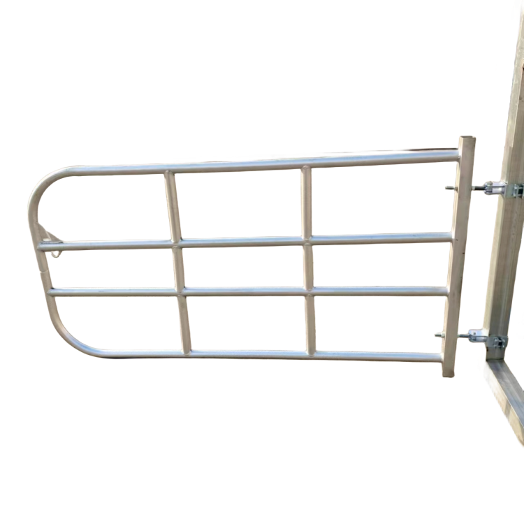 隔栏门牛场隔栏门在牛场管理中起着至关重要的作用,主要用于牛群的管理和隔离,防止奶牛混群、混养的情况发生。隔栏门的长度通常根据牛棚圈舍的宽度来定制,度一般为1米,固定在两边立柱上,饲养员可以自由开合上锁