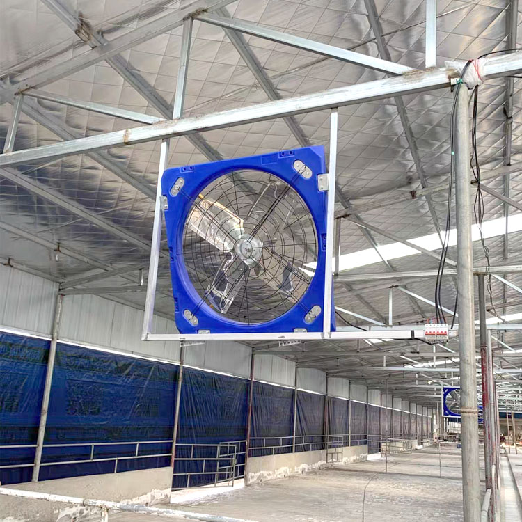 在夏季持续热应激状态下,需要持续做好早中晚的防暑降温工作,而不仅仅局限于中午温时间段。这时牛场风扇在牛场的应用非常重要。