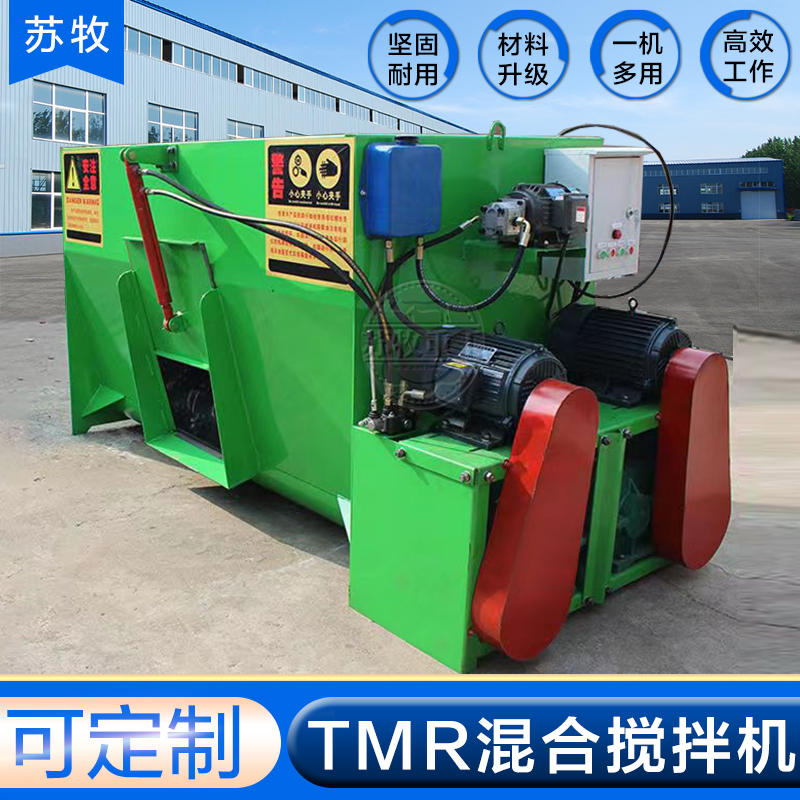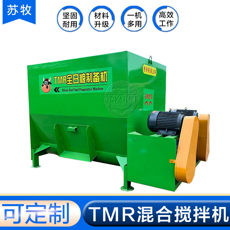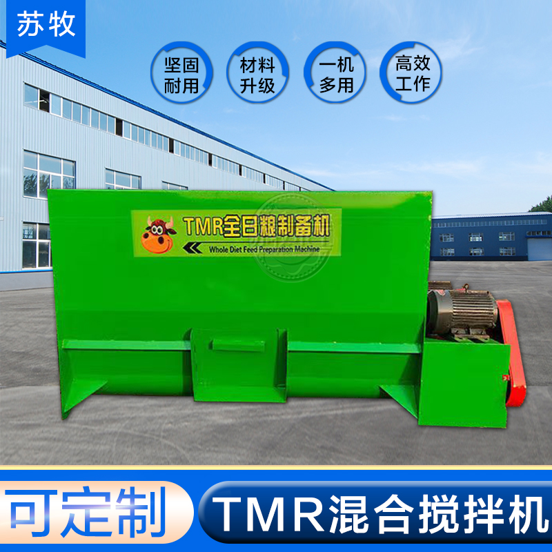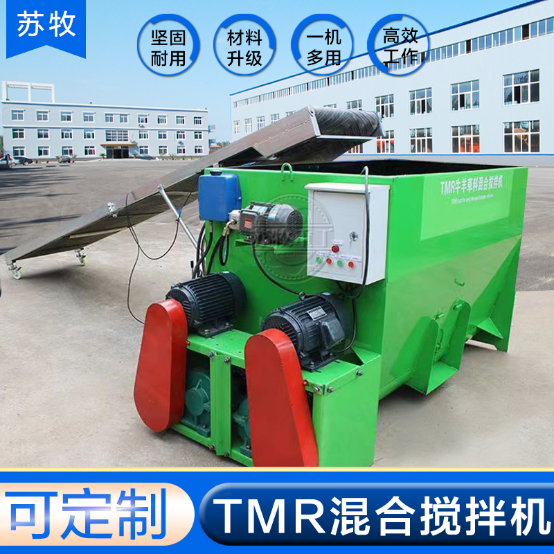 双轴饲料搅拌机的使用:秸秆经过铡切的长度对于TMR日粮配制很重要,影响着TMR的混合效果。一般情况下,青贮料的适宜长度为2-3cm,但要求有15%-20%的长度要过4cm。另外,养殖设备在混合饲料前需要测定TMR的含水量,含水量一般以40%-50%为宜。